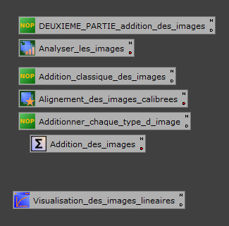 Pour en finir avec ces opérations, je reprends les deux images dont j’ai noté le nom comme référence pour l’alignement et l’addition des images, et je les renomme respectivement Alignement et Empilement afin de pouvoir les retrouver aisément par la suite. Voilà, nous en avons fini avec nos images de luminance… Oui, vous avez compris, il faut refaire la même chose avec nos poses de Rouge, Vert et Bleu. Il est cependant inutile de sélectionner une image pour l’alignement, car nous utiliserons l’image sélectionnée en luminance pour aligner les poses couleur. Il faut cependant sélectionner une image d’empilement pour chacune des couches R, V et B en utilisant soit la méthode simple, soit la méthode optimisée décrite précédemment.