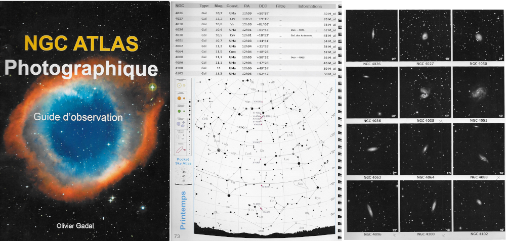 Le NGC Atlas Photographique est un guide pratique qui, comme l’indique son auteur, a été créé par un astronome amateur pour les astronomes amateurs, et cela se ressent bien à l’usage. Destiné essentiellement aux astrophotographes, bien que pouvant être utile aux observateurs confirmés et bien équipés, il permet une recherche rapide et efficace des objets à photographier. Les cartes permettent de les repérer facilement et on trouve pour chaque objet une photographie, permettant ainsi de se faire une idée de son aspect réel. Chaque photo est accompagnée de la taille du champ correspondant, ce qui permet également de savoir rapidement si la dimension de l’objet est adapté à son propre setup. Avec ses 700 objets du ciel profond, cet excellent guide vous offre des années d’inspiration pour le choix des sujets de vos photographies du ciel profond !